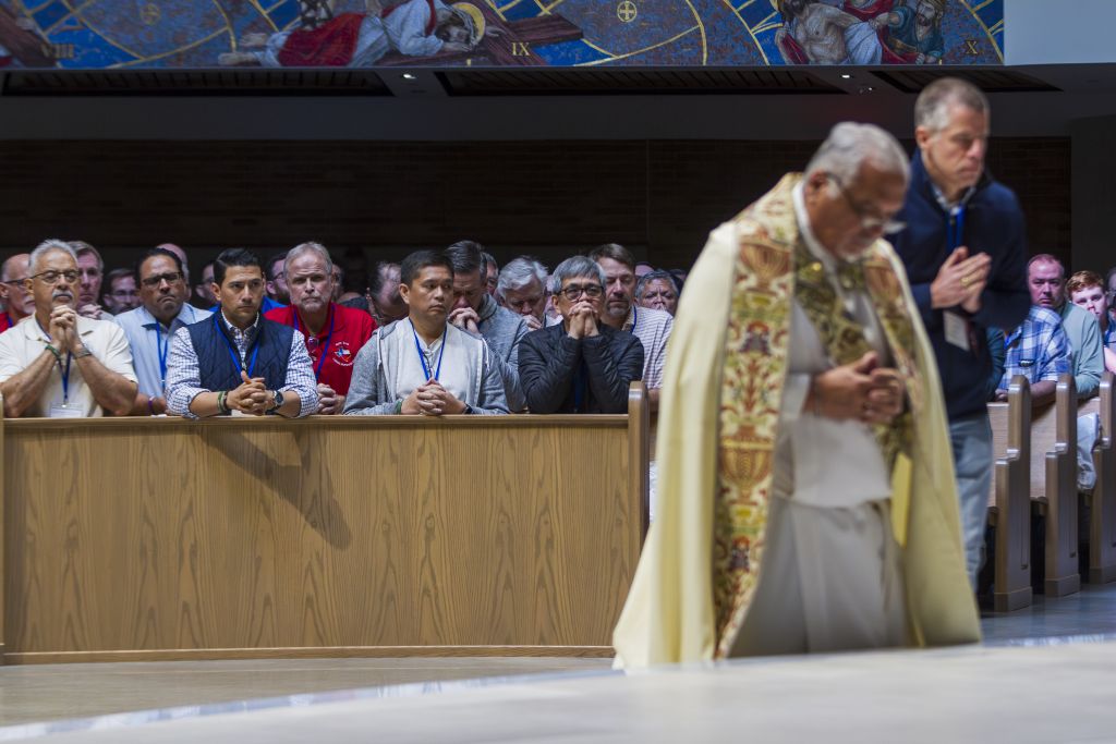 The conference presented by the Catholic Brothers for Christ ministry featured Dallas Bishop Edward J. Burns and three out-of-state speakers who addressed themes of spiritual warfare, repentance, and redemption. Participants spent time in eucharistic adoration, prayed the rosary together, and received the sacrament of reconciliation, with 32 priests converting Catholic school classrooms into temporary confessionals.