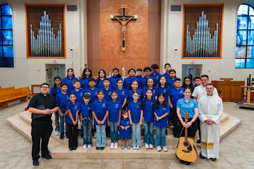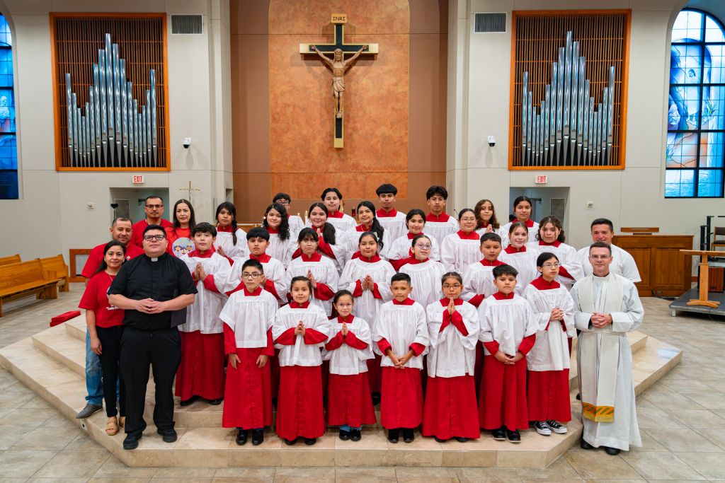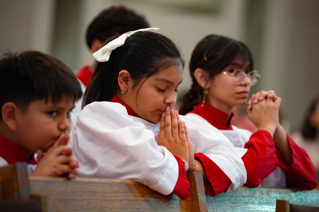 De cara al Santísimo, abriendo los oídos y los ojos del corazón, decenas de niños y jóvenes servidores del altar, así como familias enteras participaron el 8 de agosto en la primera Hora Santa Vocacional en la parroquia de María Inmaculada en Farmers Branch.