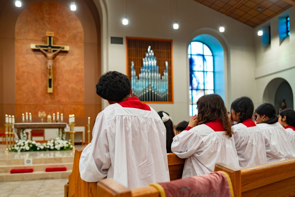 Rangel se emociona de ver a sus hijo Levi Guzmán de 10 años y Juan Pablo Guzmán de 8, servir como monaguillos, pues ella de joven fue también servidora de altar, en la parroquia de Santa Mónica en Dallas. Ahora, junto a su esposo Elíseo Guzmán, pertenecen a la Iglesia de María Inmaculada.